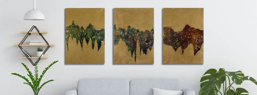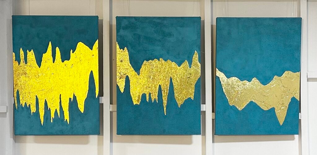 I’ve always found inspiration in unexpected places. The first spark of inspiration for this series came one night, whilst I laid awake listening to the sound of my husband’s snoring. I pondered whether it would be possible to paint a sound. I started experimenting and soon discovered the means of capturing the ‘waveform’ of specific sounds. I could take this image of the soundwave and paint it!