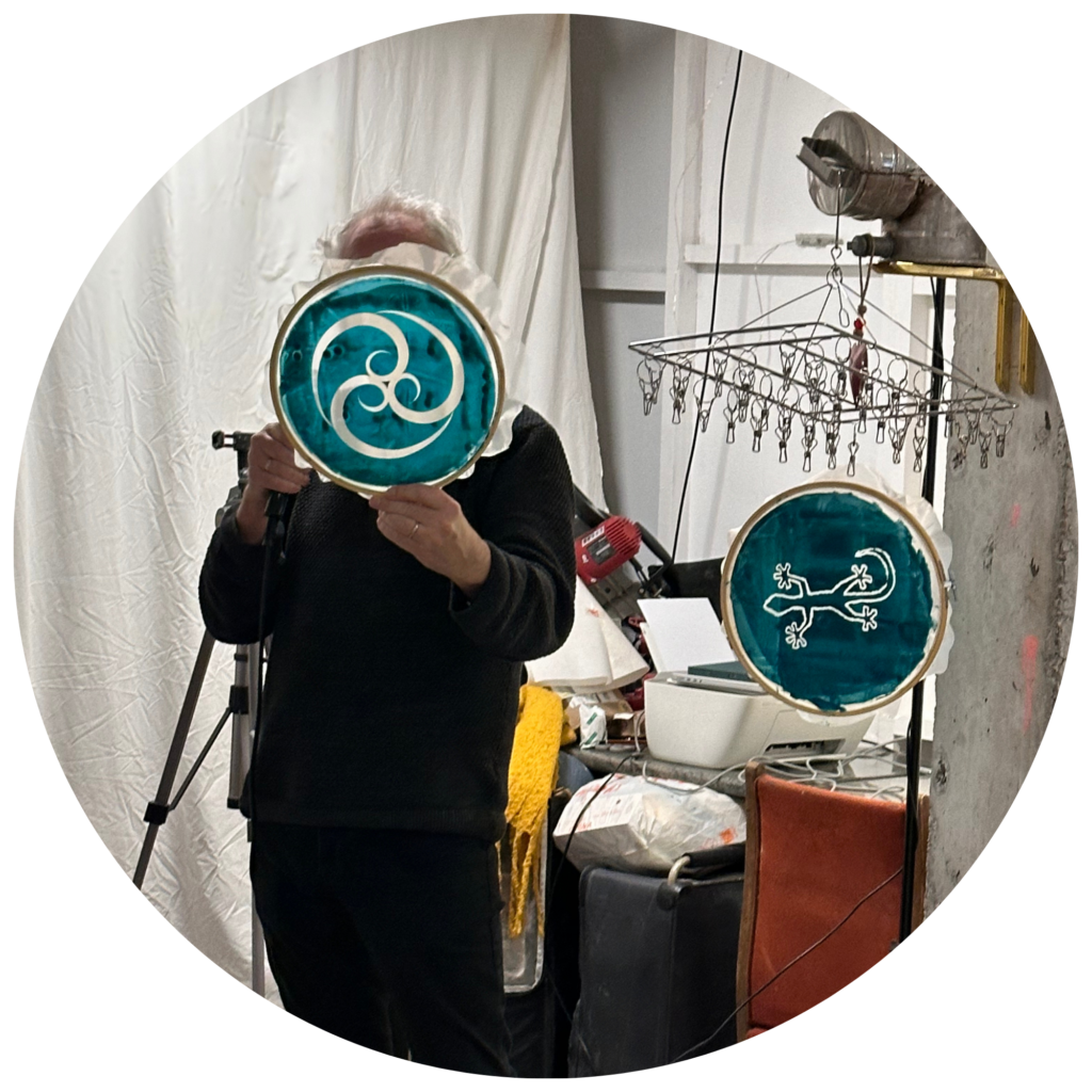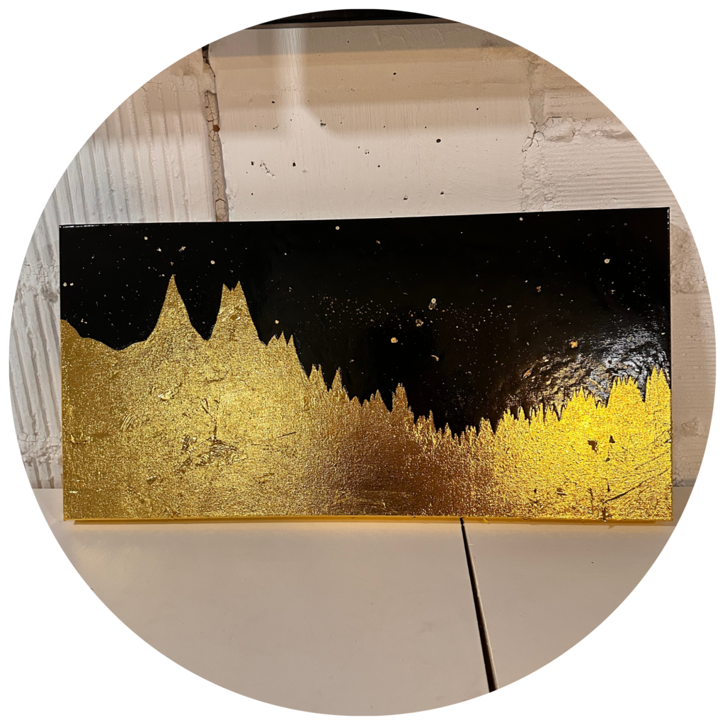 I’m Tansy – an artist living and working in the Alpujarras region of Southern Spain, where I run my studio and gallery in Órgiva. I paint with industrial materials, glitter, gold leaf, and sometimes dead insects – making bold, joyful work that doesn’t quite fit the label of fine art.